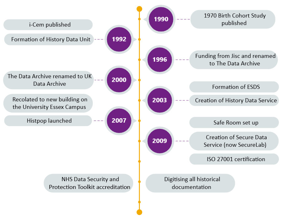 Figure 1 – A timeline of the UK Data Archive and UK Data Service.