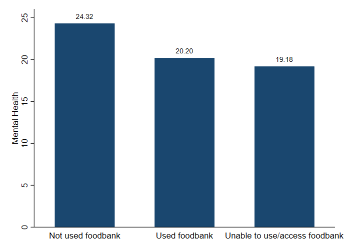 We did not expect to find that access to food banks was associated with better mental health, given current published research highlighting the stigma associated with food aid and the implication that this could impact negatively upon mental health.